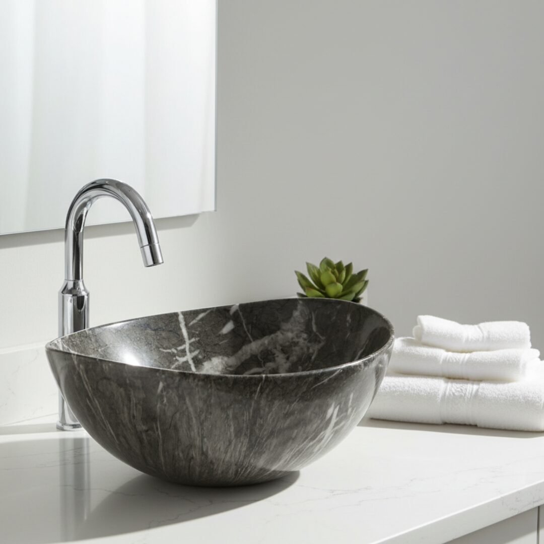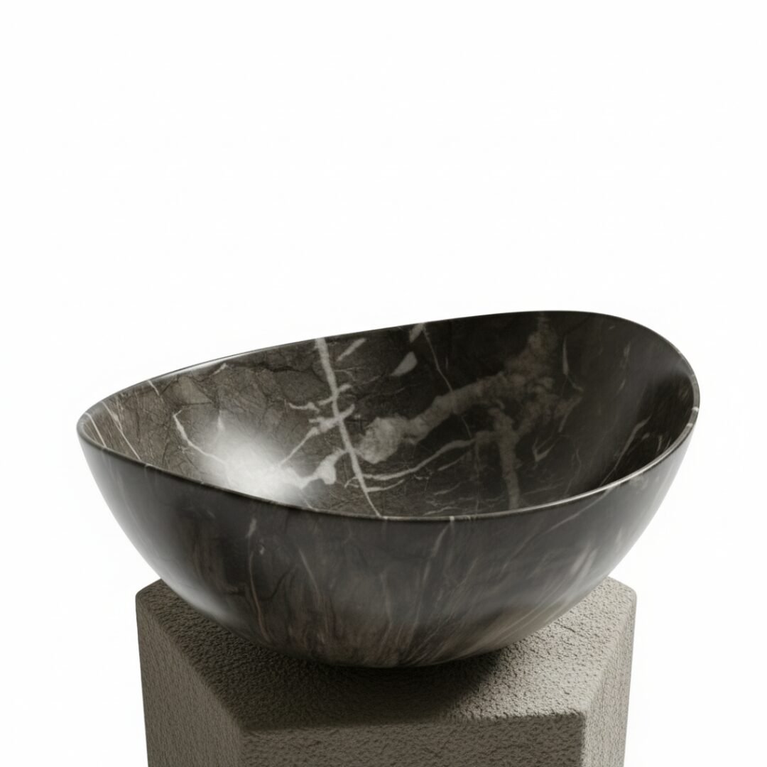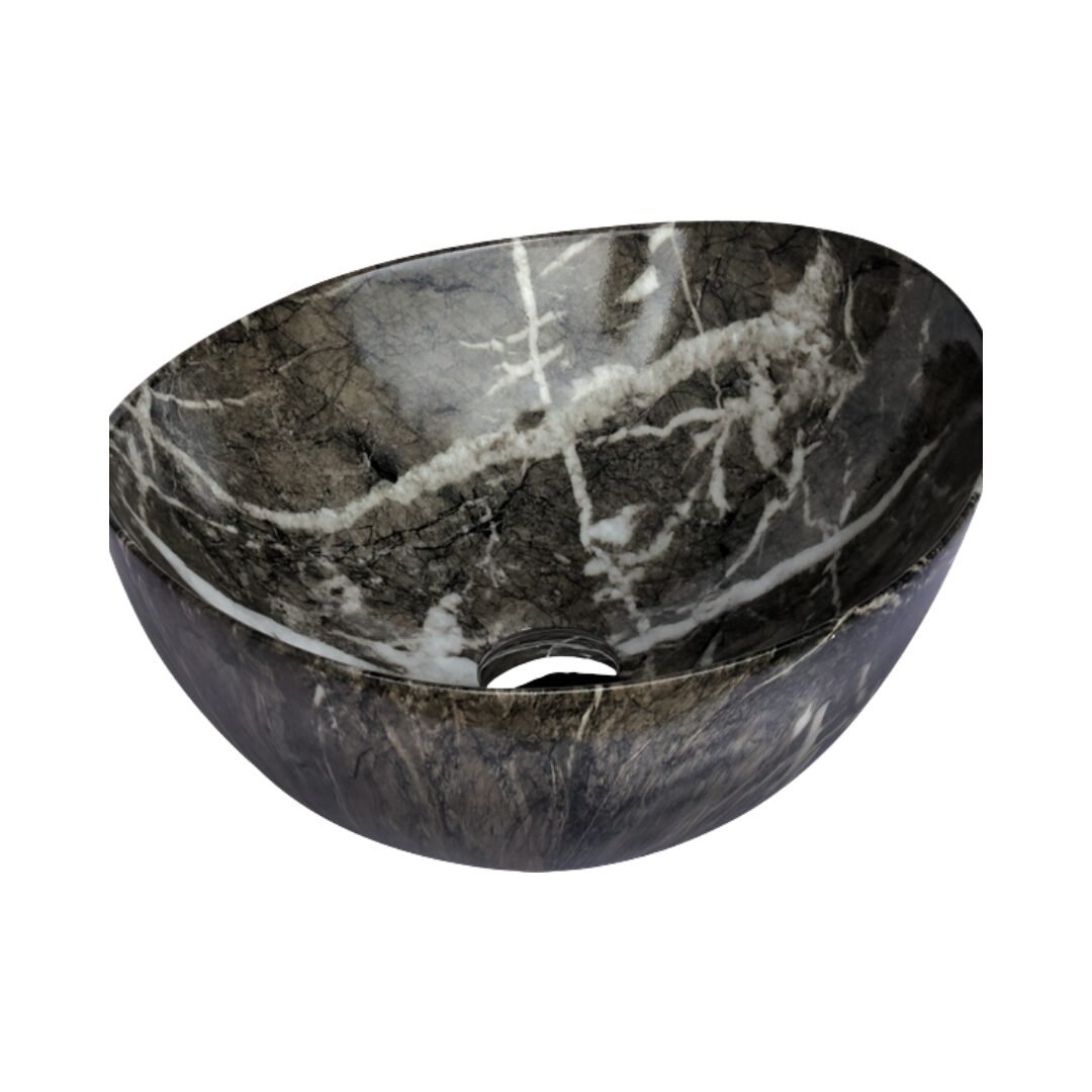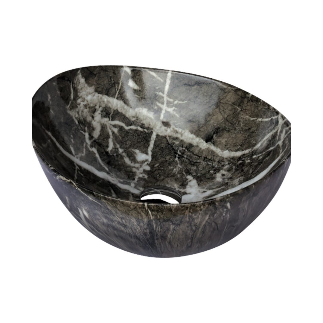 Elevate your space with this modern oval wash basin. Crafted from high-quality ceramic with a stunning amber-toned marble effect, it offers the beauty of stone with the practicality of ceramic. The unique veining creates a warm and sophisticated focal point for your bathroom.